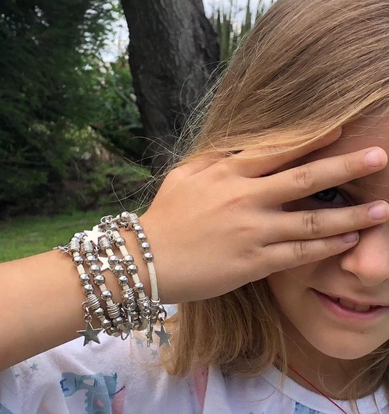 PULSERA DE CUERO BLANCA CON ESTRELLAS